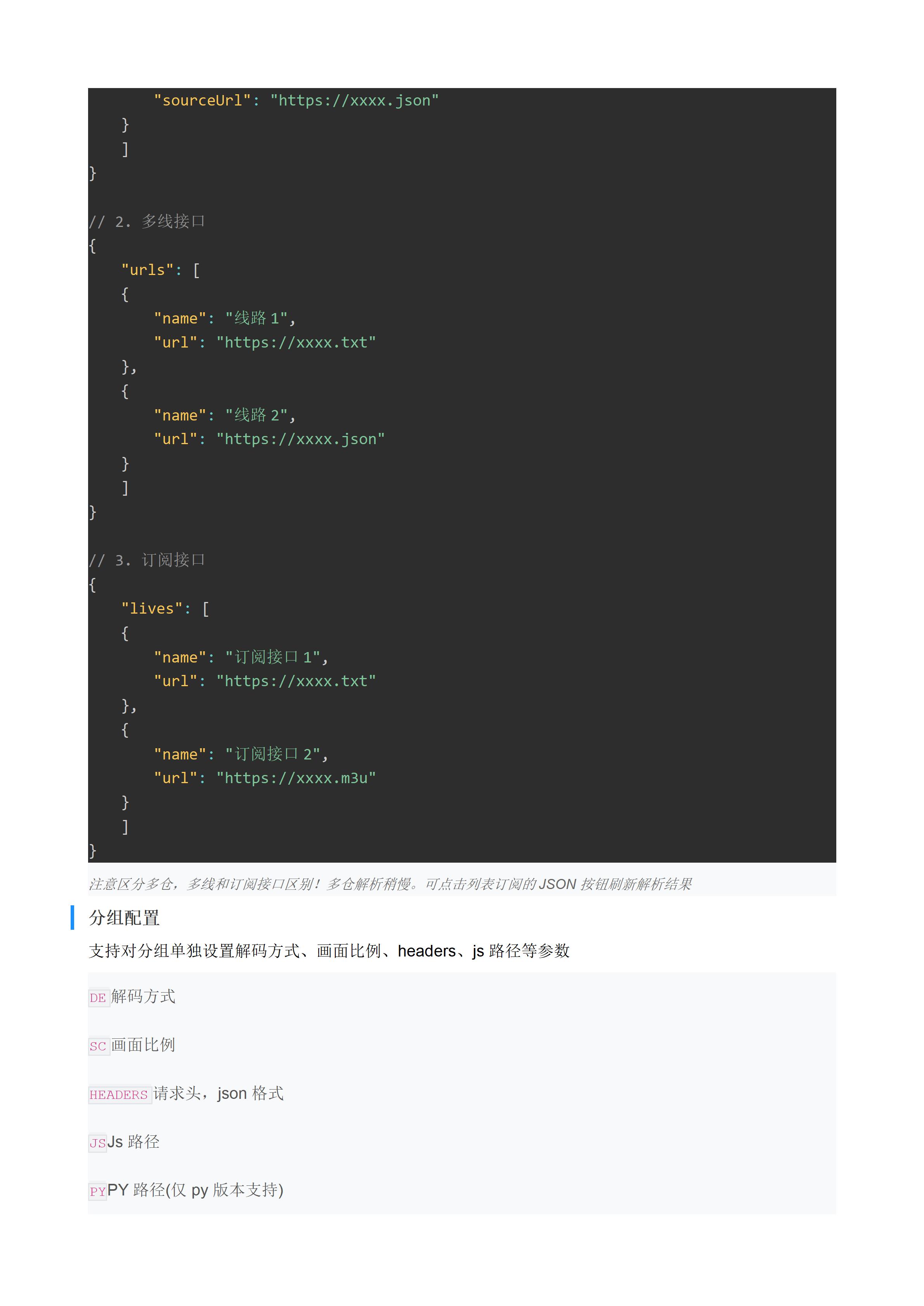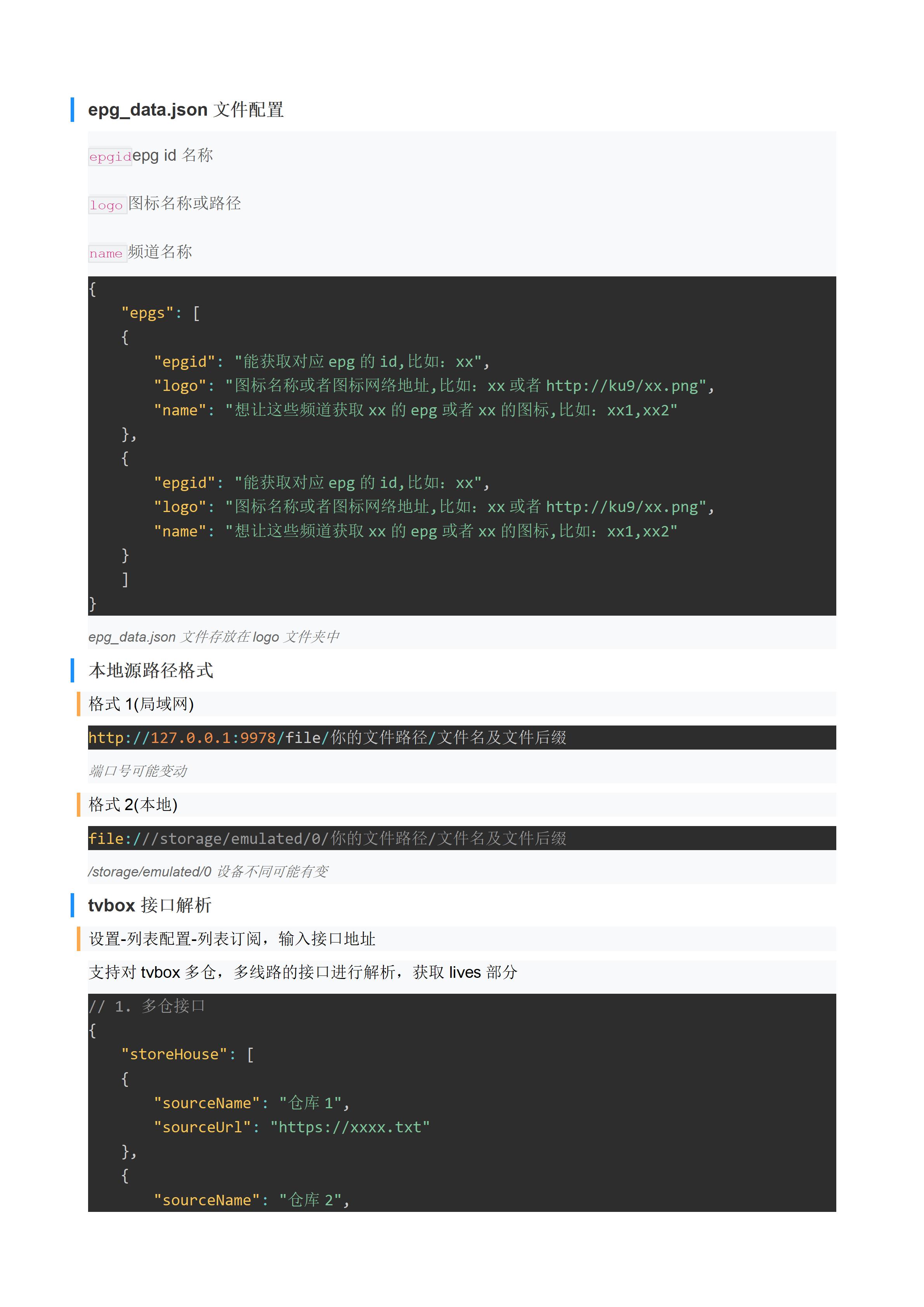 - EPG地址需配置对应的解析方式,否则不能加载。