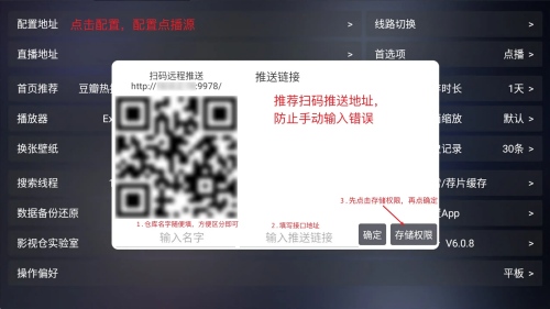 手机扫码配置指南,一定要确保扫码设备和安装应用的设备连接同一WiFi,即你的电视和你的手机要是连接的同一个wifi网络,很多人电视用了有线网络,手机用的无线网络,这样的没用的。